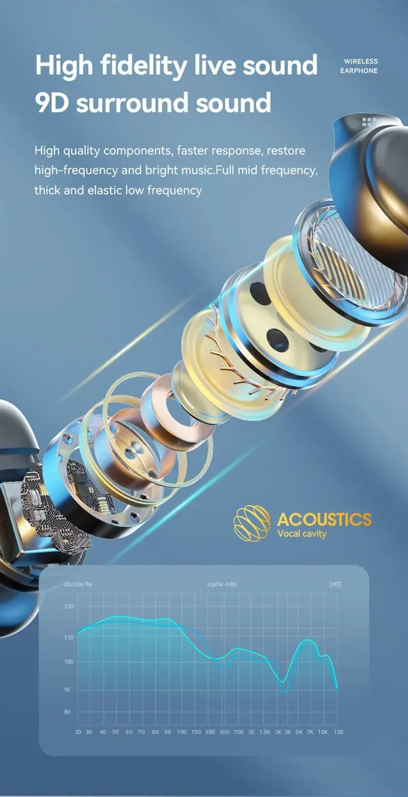 Componentes de alta qualidade, resposta mais rápida, restaura alta frequência e música brilhante. Frequência média completa, baixa frequência grossa e elástica